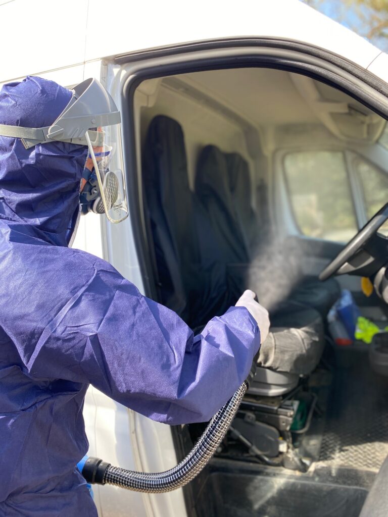 Our team uses a state of the art specialist cleaning product that has been designed specifically to use physics to target the bacteria and is non-toxic. The mist works by mechanically killing the bacteria/virus instead of poisoning or dehydrating the germs as traditional alcohol-based products do. With businesses now being encouraged to go back to work, it’s more important now than ever to ensure that your premises and fleet have been appropriately disinfected. The solution becomes active once it starts to dry on the surface, offering protection for 30 days so you don’t have to worry about daily deep cleans. During this time you are able to wipe down surfaces and the product will not lift, instead, it stays active on the surfaces continuing to provide protection.
